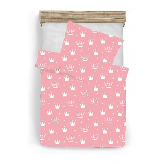 Beautiful children's bedding with a crown motif, it is suitable for little princesses in a girl's room. The bedding is made of the highest quality material and 100% cotton.
