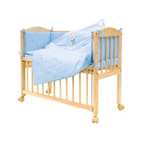 Comprising of seven pieces, it provides a full baby cot set. Together with the combination of the teddy bear motif and the soft blue colour, this bedding is ideal for a little baby boy.