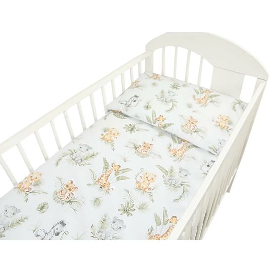 Soft cotton bedding for the crib will bring your little ones a comfortable sleep. The bedding is decorated with a cheerful motif of jungle animals. Thanks to the universal colors, it will fit perfectly into any type of room.