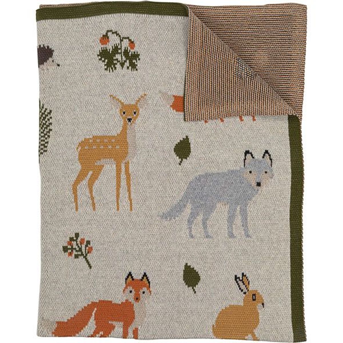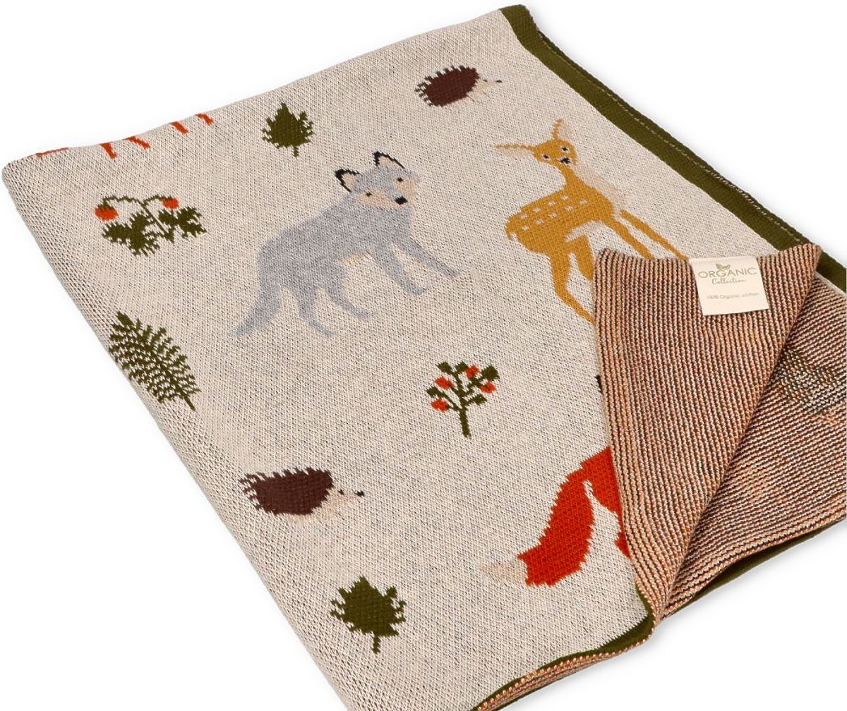 Organic cotton blanket with forest animal motifs, perfect for children's rooms. .. more