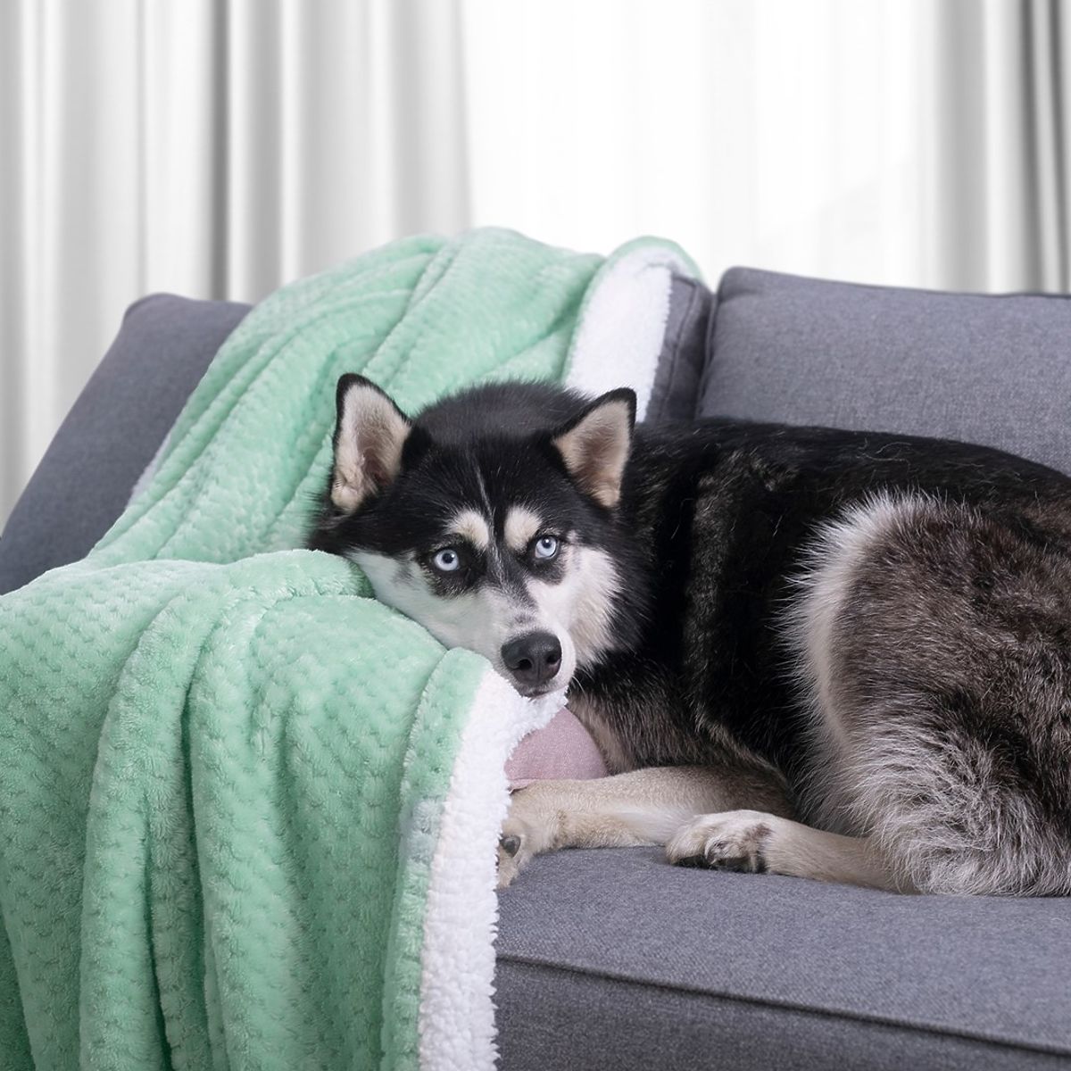 Mint jacquard embossed blanket for cozy relaxation. .. more