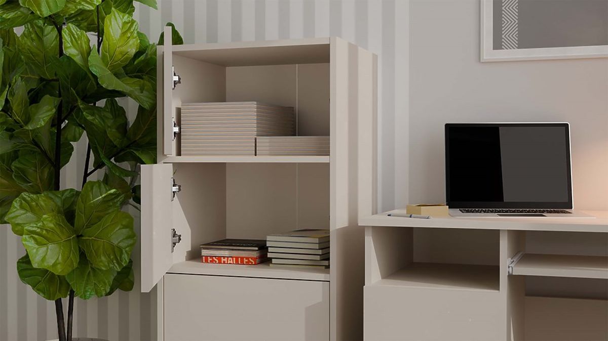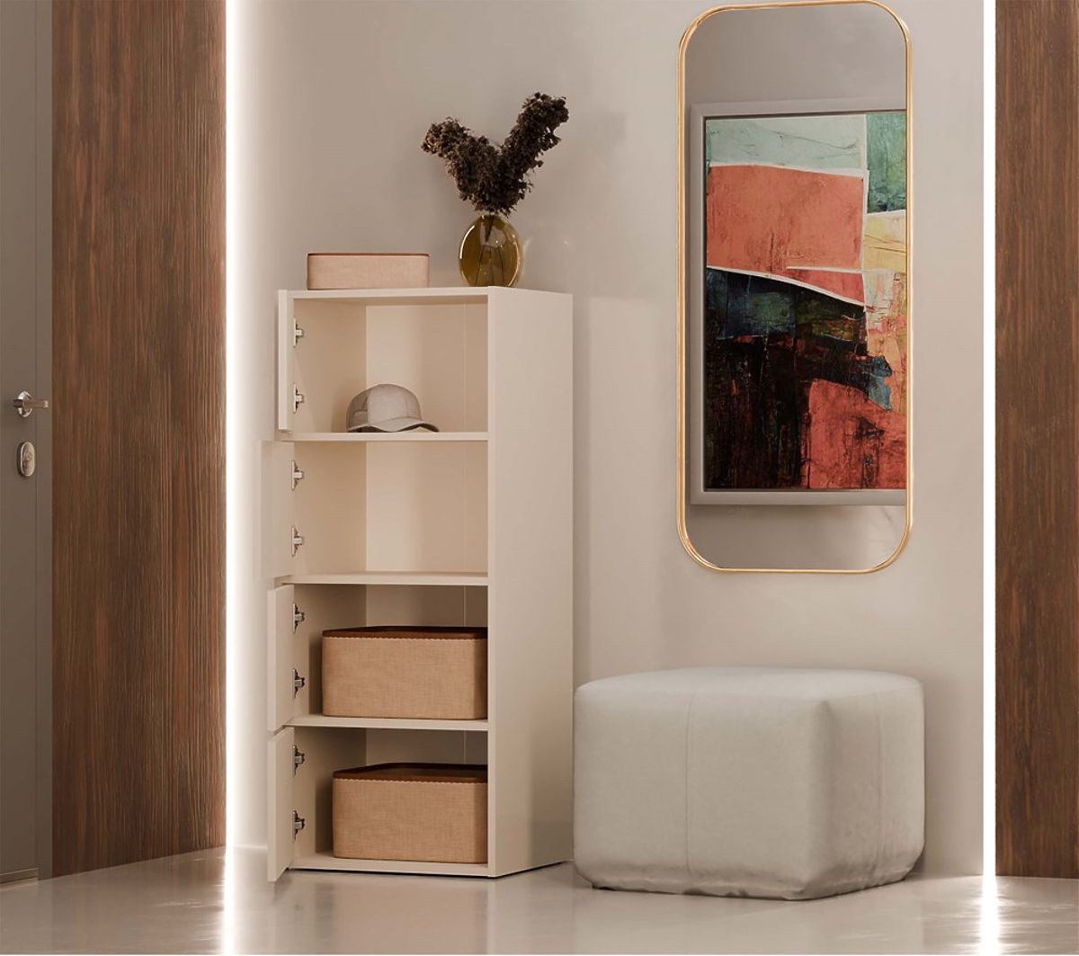 Elegant and functional ALMA dresser with cashmere color and 4 doors. .. more