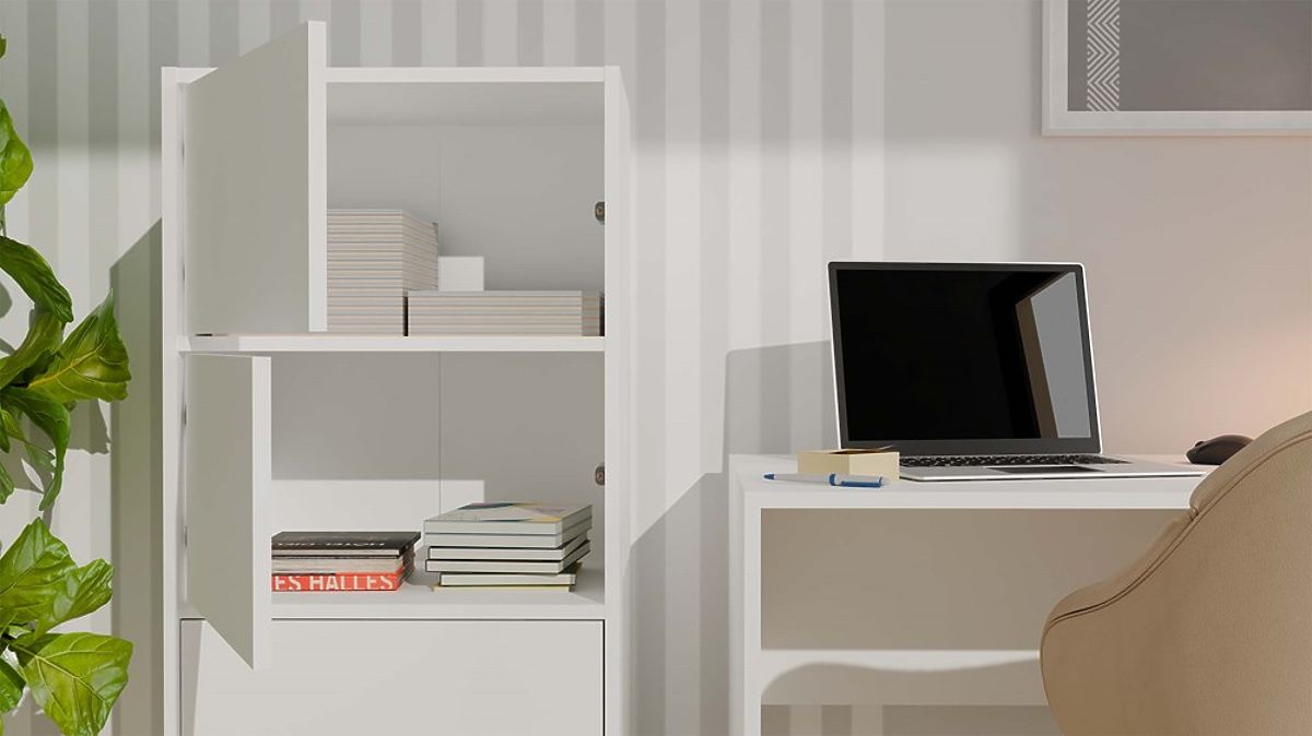 Banaby.eu » Children's furniture / Children's chests of drawers and wardrobes / Children's chests of drawers / ALMA WHITE Sideboard Cabinet 4 Doors 4 Shelves