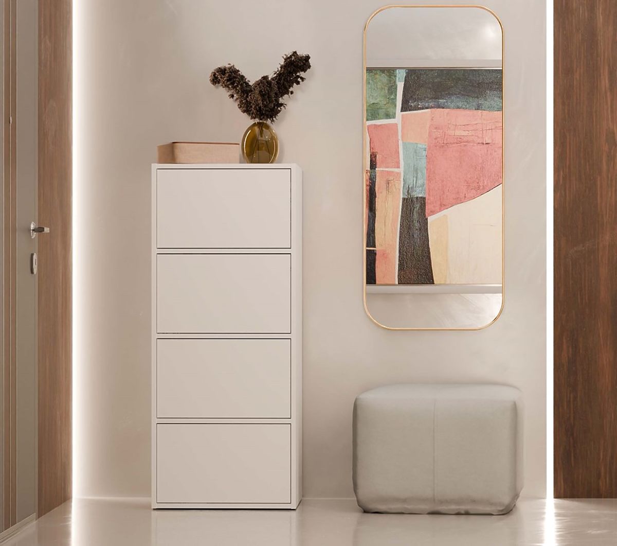 The ALMA sideboard is an elegant and functional piece of furniture, perfect for various rooms — from the hallway, living room, and bedroom to the children's room or home office. Its minimalist design and classic white color suit many interior styles, and the handle-free fronts with the TIP-ON system add a modern touch.