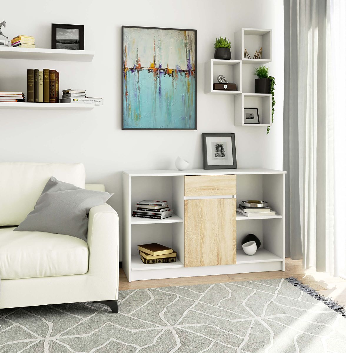Banaby.eu » Children's furniture / Children's chests of drawers and wardrobes / Children's chests of drawers / CHEST OF DRAWERS B-17 120 cm 1 DRAWER 1 DOOR PK WHITE / SONOMA