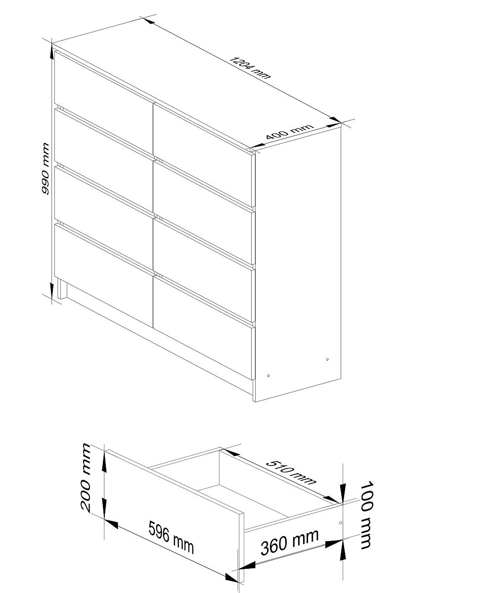 CHEST OF DRAWERS K 120cm 8 DRAWERS