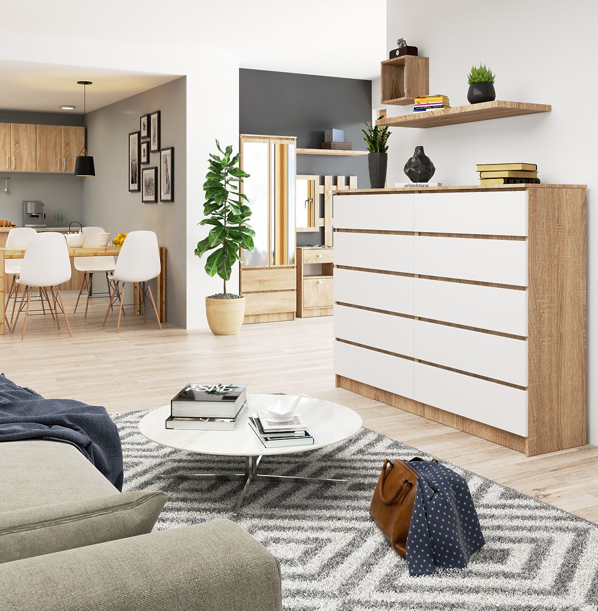 Spacious chest of drawers with 10 drawers in oak sonoma and white. .. more