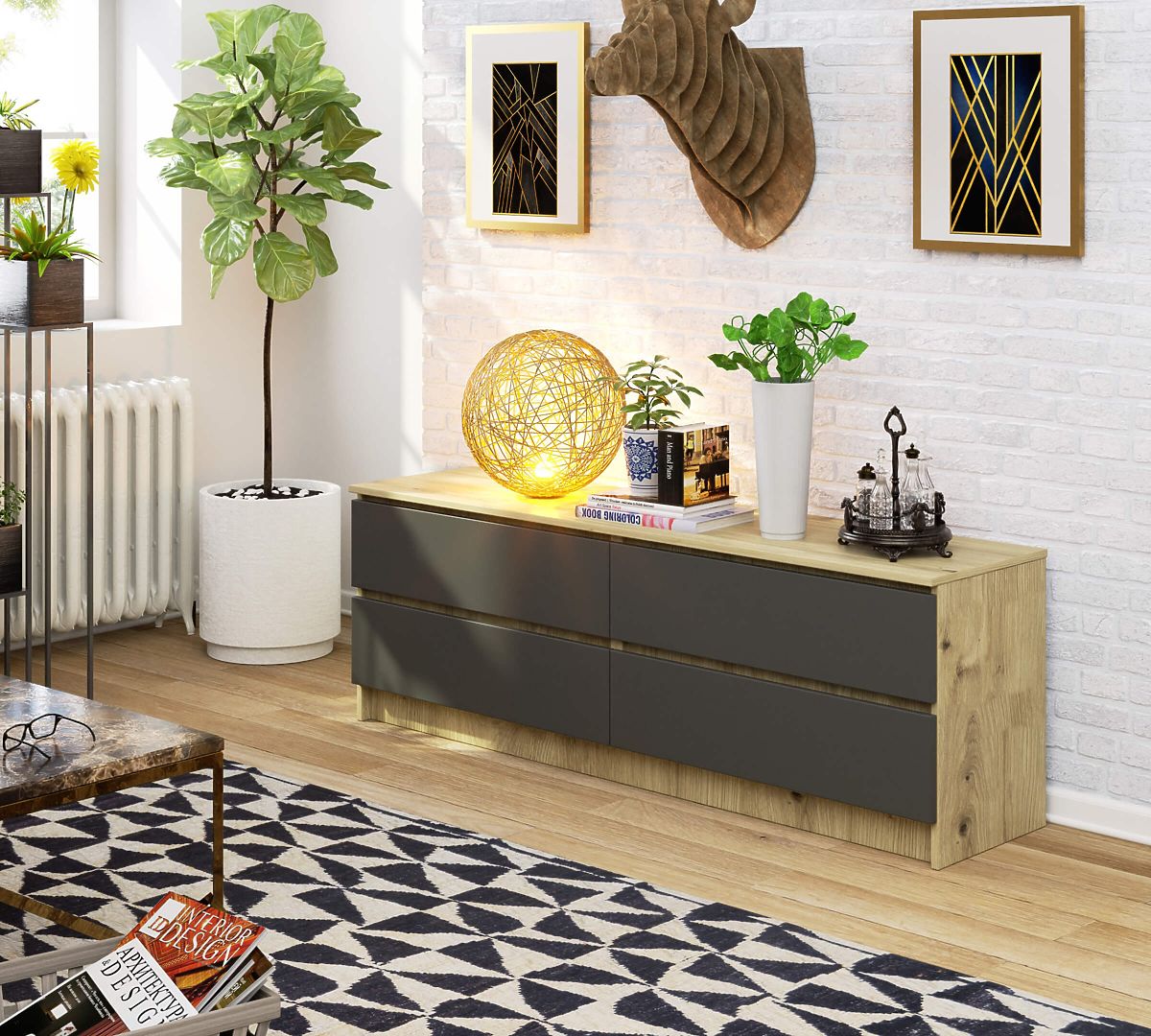 Chest of drawers with 4 drawers in Artisan Oak and Gray. .. more