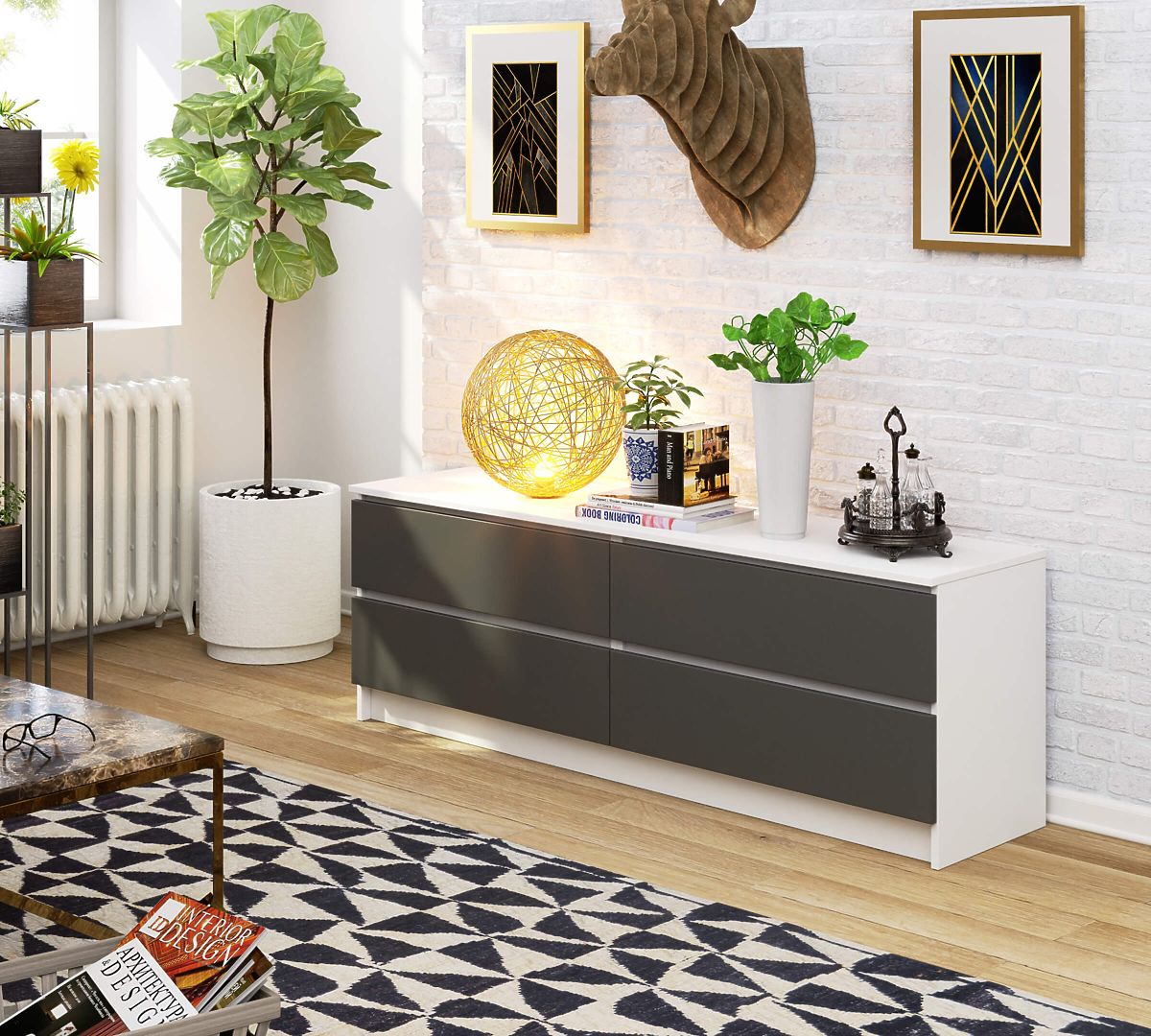 Abrasion-resistant white and gray chest of drawers with four drawers. .. more