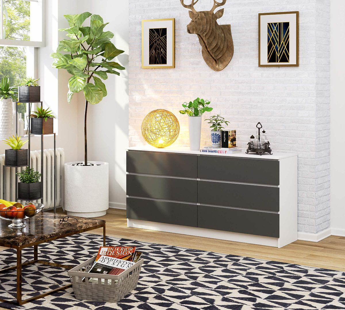 Versatile chest of drawers with six spacious drawers in white and graphite gray. .. more