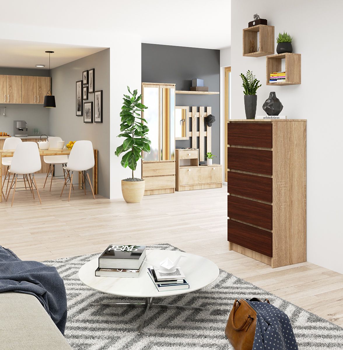 5-drawer chest with Sonoma Oak body and Wenge fronts. .. more
