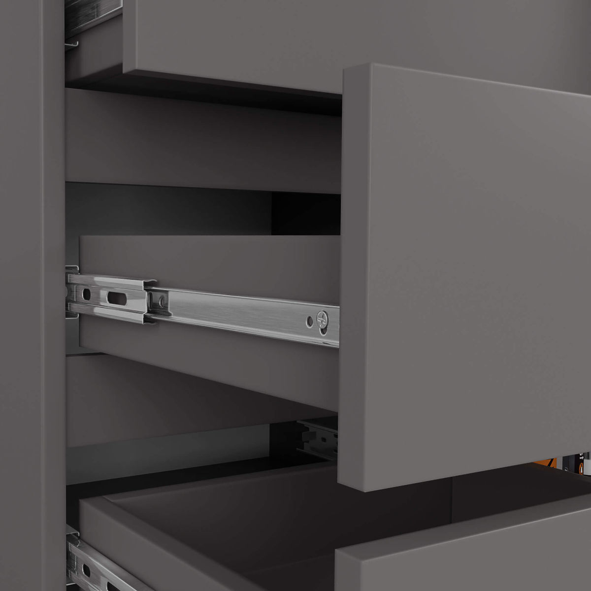 The chest of drawers is a piece of furniture that will find use in any room. Modern colors, solid construction, and careful craftsmanship have led to the creation of a cabinet that can be used in a hallway, living room, or student room, as well as in a bedroom. It can also be used in office spaces, where it allows for the storage of many documents and other office supplies. The chest consists of one door (with three shelves inside) and 5 drawers. The furniture combines the color of graphite gray.
