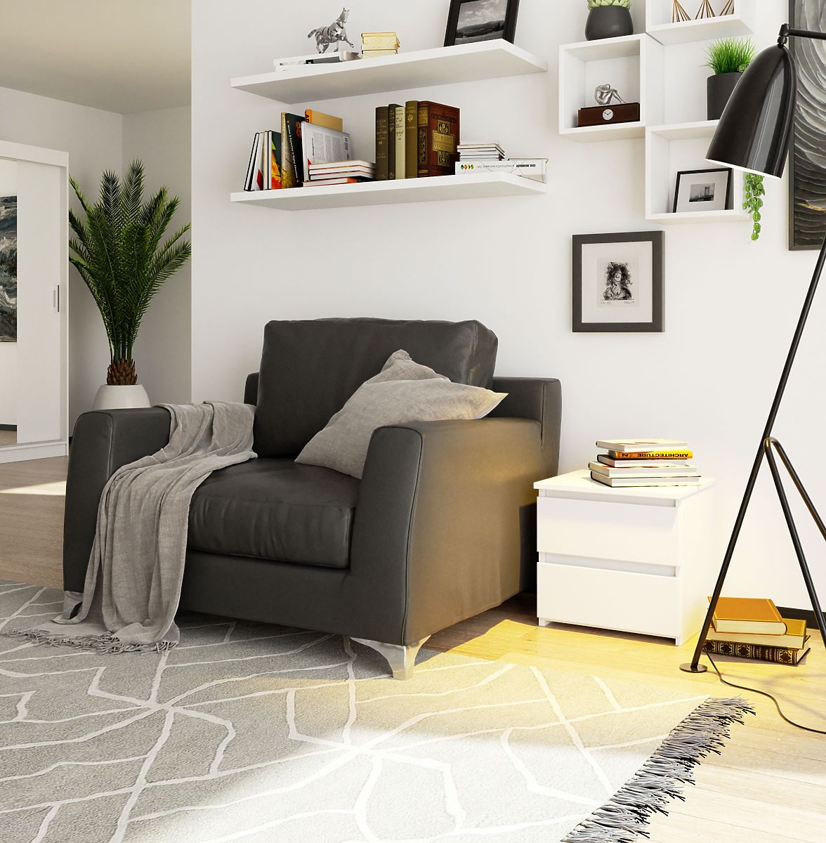 The nightstand is one of the basic pieces of furniture in the bedroom. The nightstand is white, made from 16 mm thick laminated board, which is also abrasion-resistant. The fronts and sides of the nightstand are edged with ABS edging, providing greater resistance to minor mechanical damage, such as scratches. It has two spacious handleless drawers that can accommodate all necessary items that should be within reach. The nightstand measures 40 cm in length, 40 cm in height, and 35 cm in depth. The drawers are equipped with metal roller guides, which can be easily removed and cleaned if necessary. Thanks to its universal pattern and color, it fits into any bedroom and can be successfully combined with other pieces of furniture from the CLP system. Its modern yet minimalist appearance allows for easy integration into many interior styles. The top is large enough to hold both a bedside lamp and small decorations or a book.