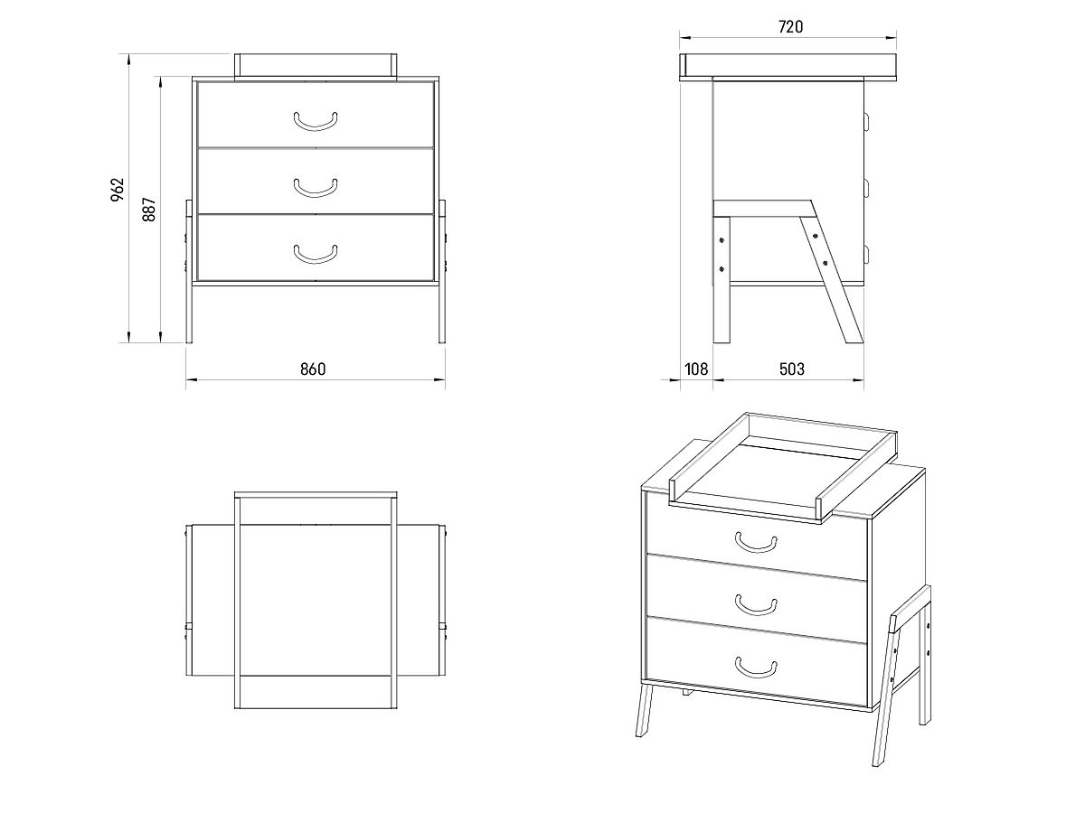 The changing table is the ideal place to care for your baby. Comfort and ample space are provided by three large drawers, where you will have everything you need at hand. The changing surface of 70x50 cm is intended for children up to 12 months or up to 11kg.