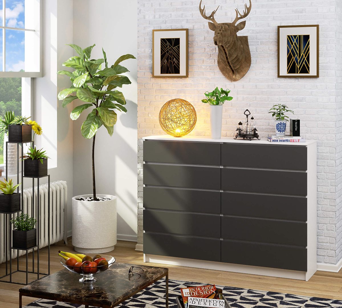 160cm wide dresser with 10 drawers and graphite gray fronts. .. more
