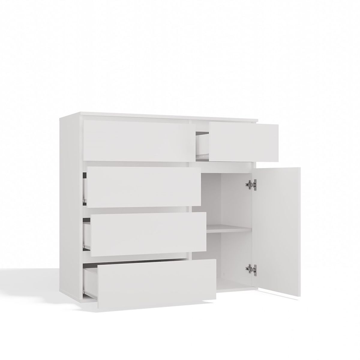 White dresser with 1 door and 5 drawers for versatile storage. .. more