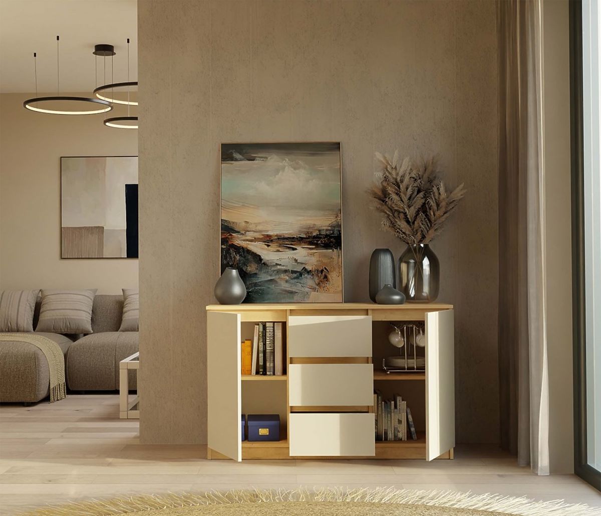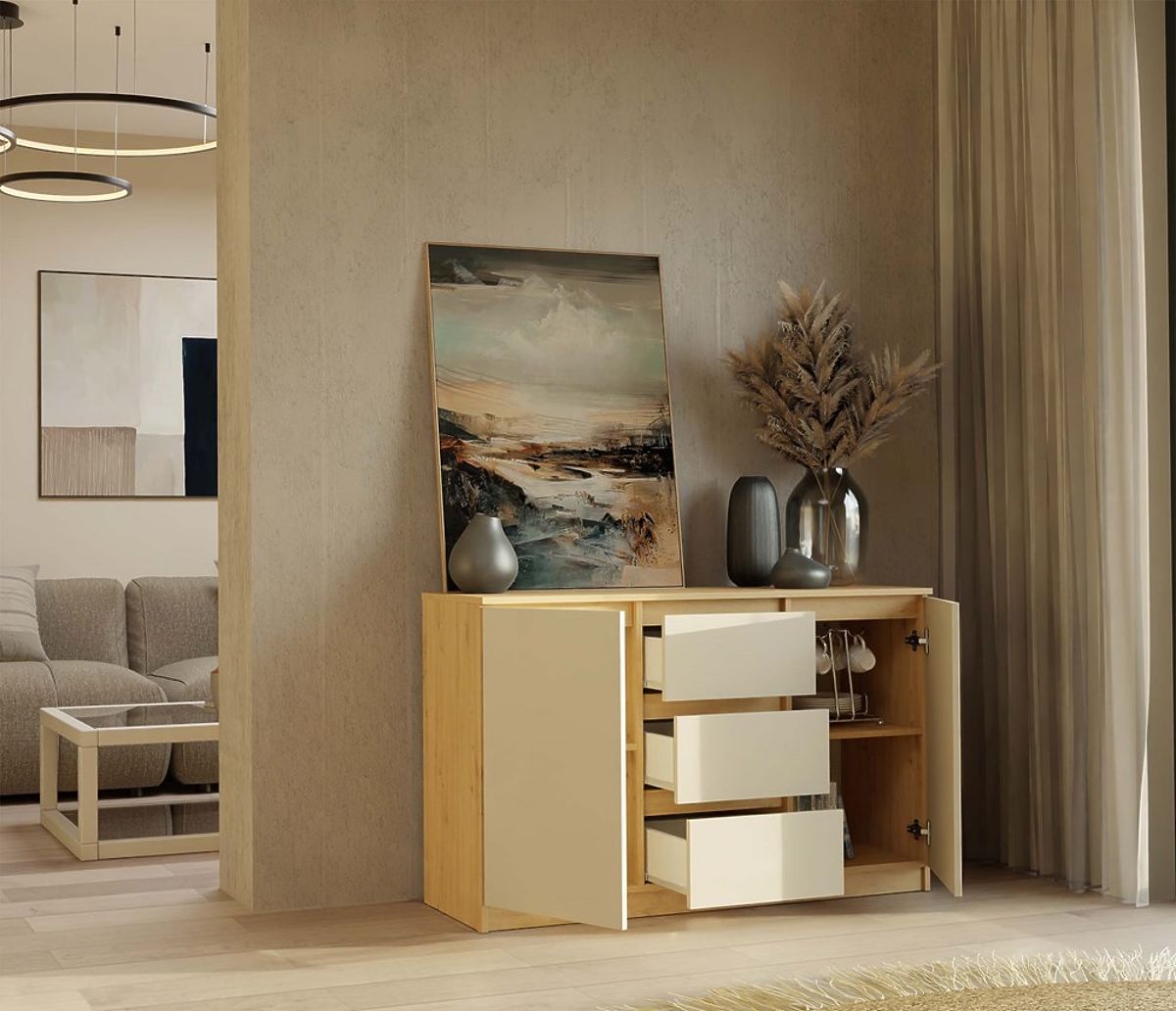 Banaby.eu » Children's furniture / Children's chests of drawers and wardrobes / Children's chests of drawers / Malwa 2D3S Sideboard OAK ARTISAN CASHMERE BEIGE