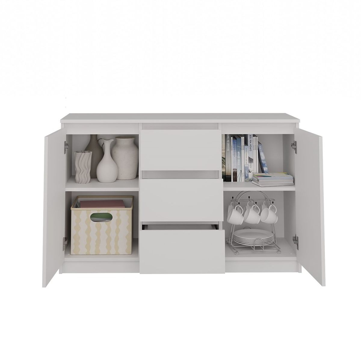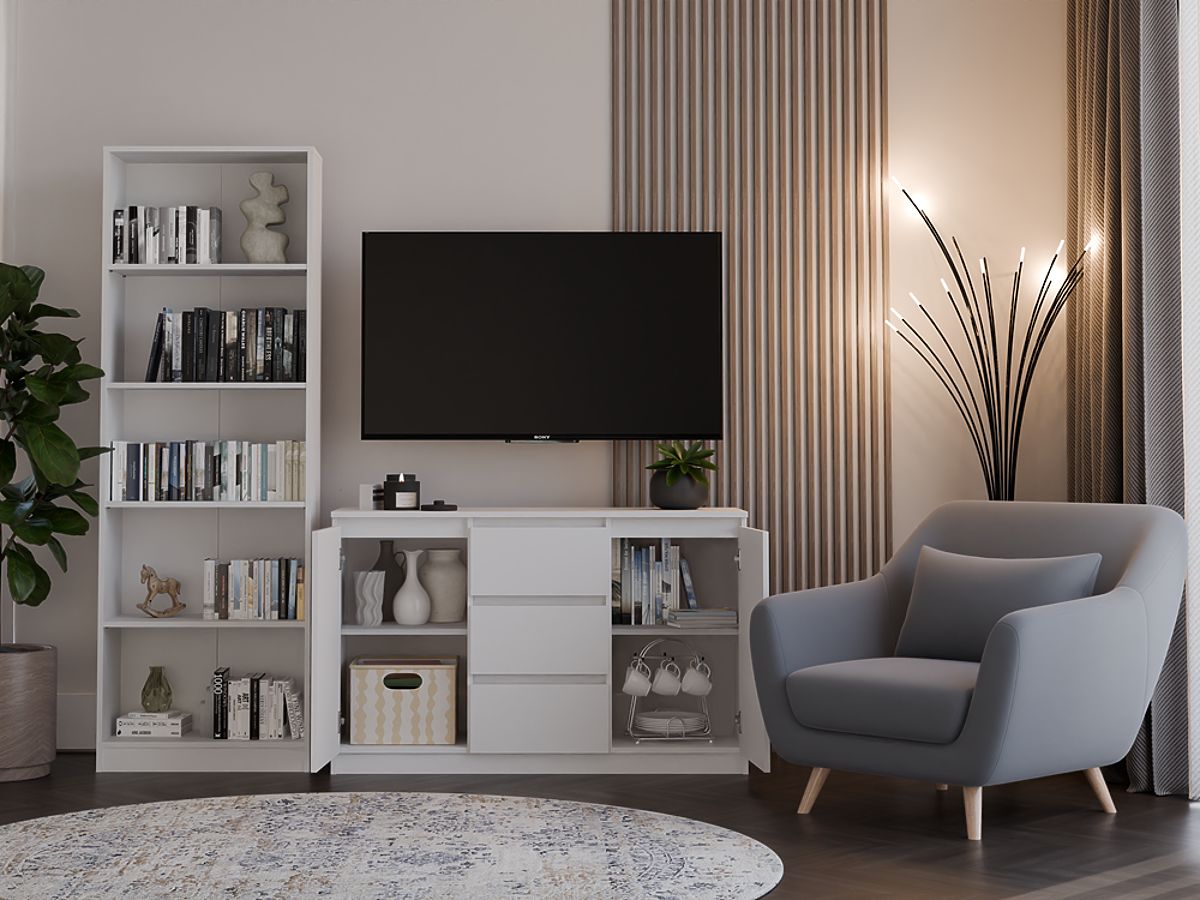Modern dresser with 2 doors and 3 drawers, perfect for organizing your space. .. more