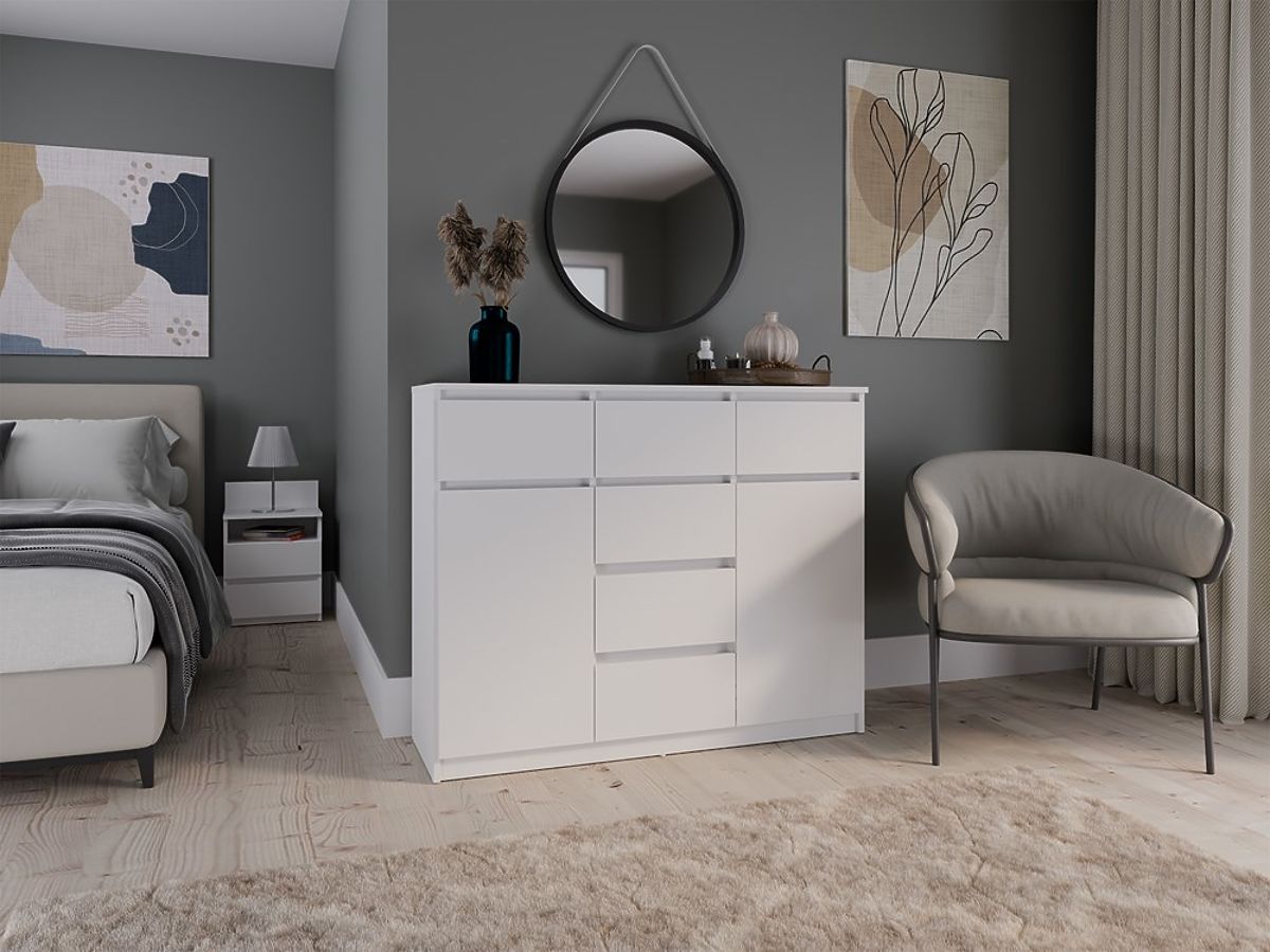 • Universal design: The simple, elegant form of the dresser in matte white ensures it fits both modern and classic interiors. Handleless fronts emphasize the minimalist character while ensuring convenient use.
