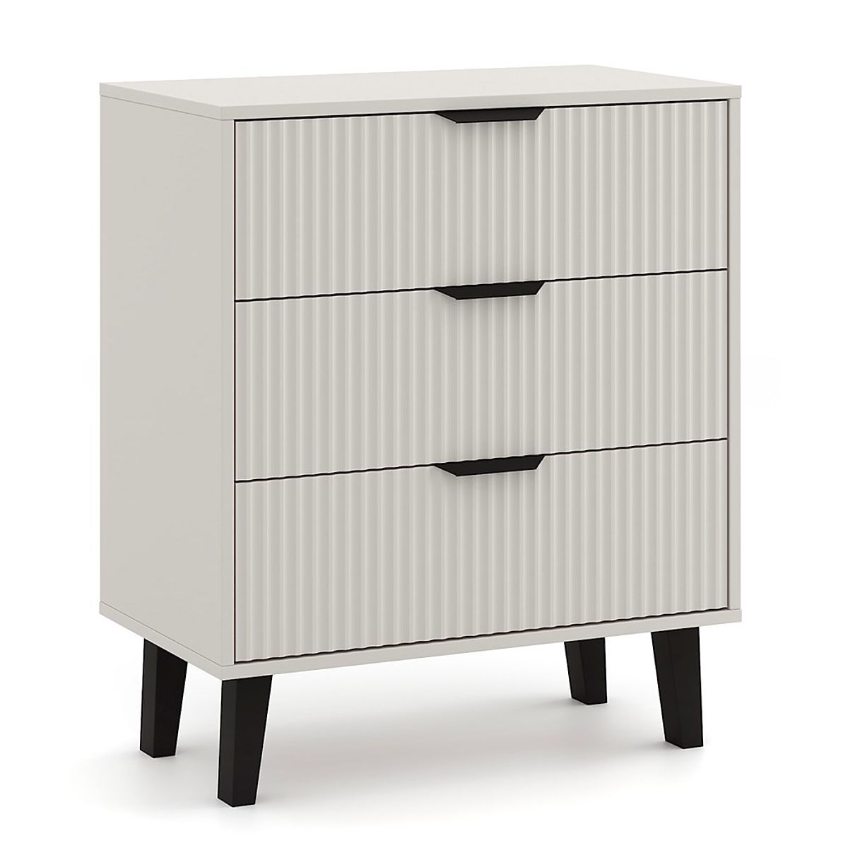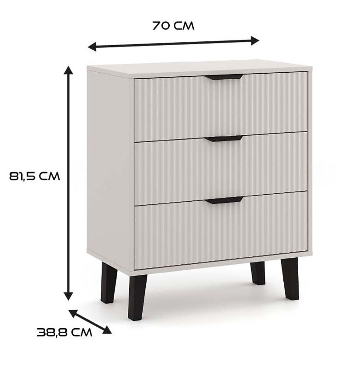 The SCANDI 3S SLIM chest of drawers is an ideal choice for those seeking practical storage furniture with a touch of modern design. Fashionable Cashmere color combined with grooved fronts and high black legs adds coziness and elegance to the interior.