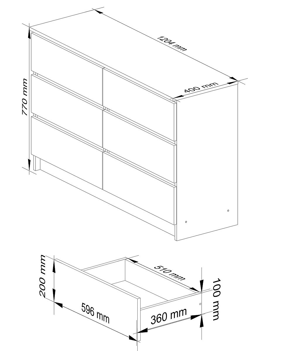 - Drawers move on metal rails- Edges finished with ABS edging for high protection against damage
