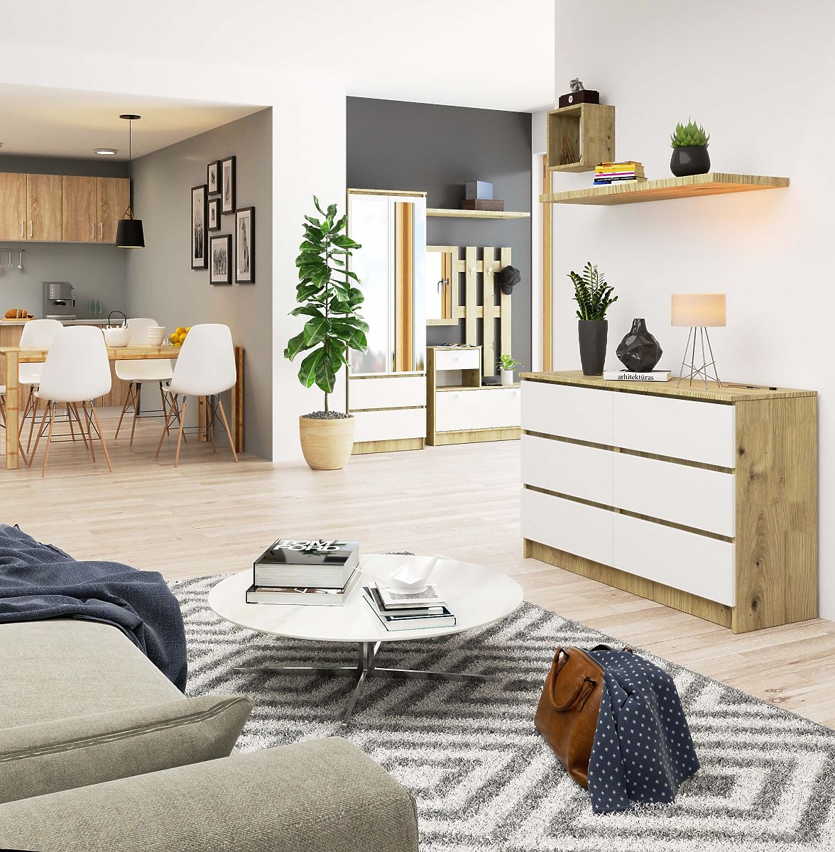 Sideboard with 6 drawers in Oak Artisan and White finish. .. more