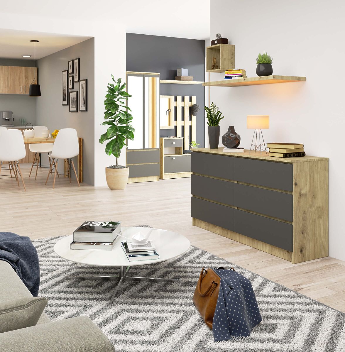 Banaby.eu » Children's furniture / Children's chests of drawers and wardrobes / Children's chests of drawers / SIDEBOARD K140 6DR CLP OAK ARTISAN / GRAY