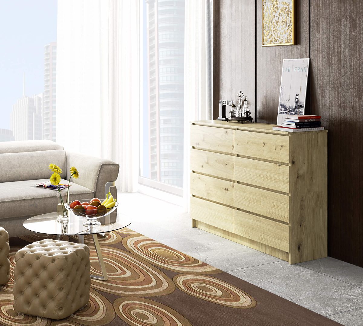 Sideboard with 8 drawers in Artisan Oak finish. .. more