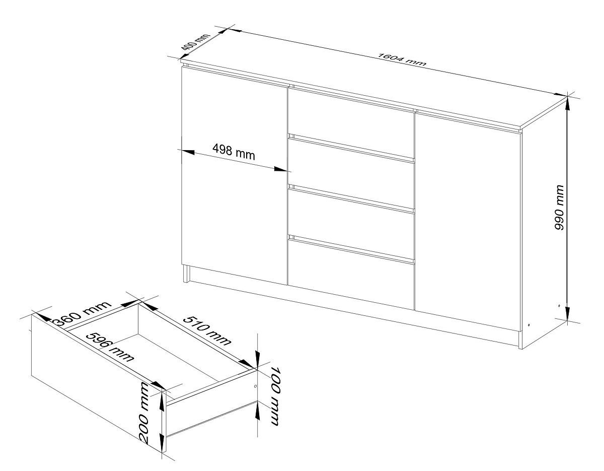 SIDEBOARD K160 cm 2 DOORS 4 DRAWERS