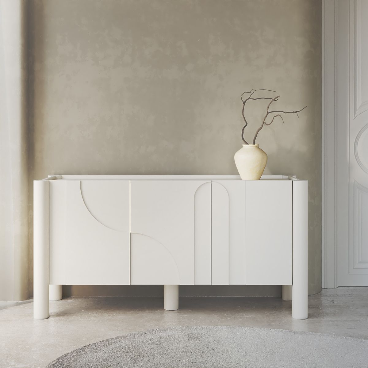 Banaby.eu » Children's furniture / Children's chests of drawers and wardrobes / Children's chests of drawers / Three-Door Sideboard Lunaria with Carved Front, White
