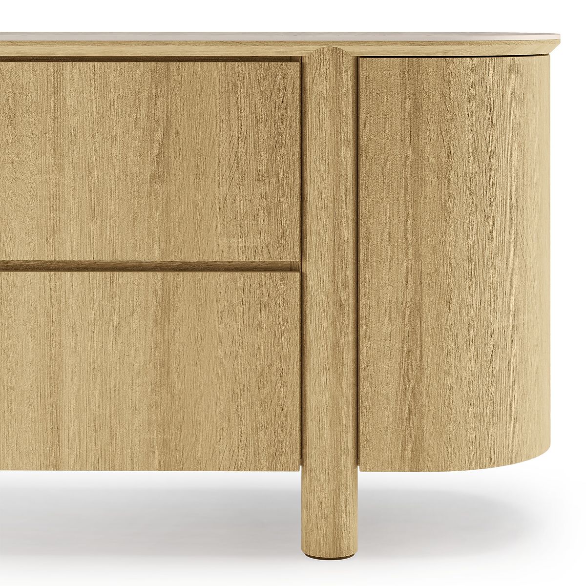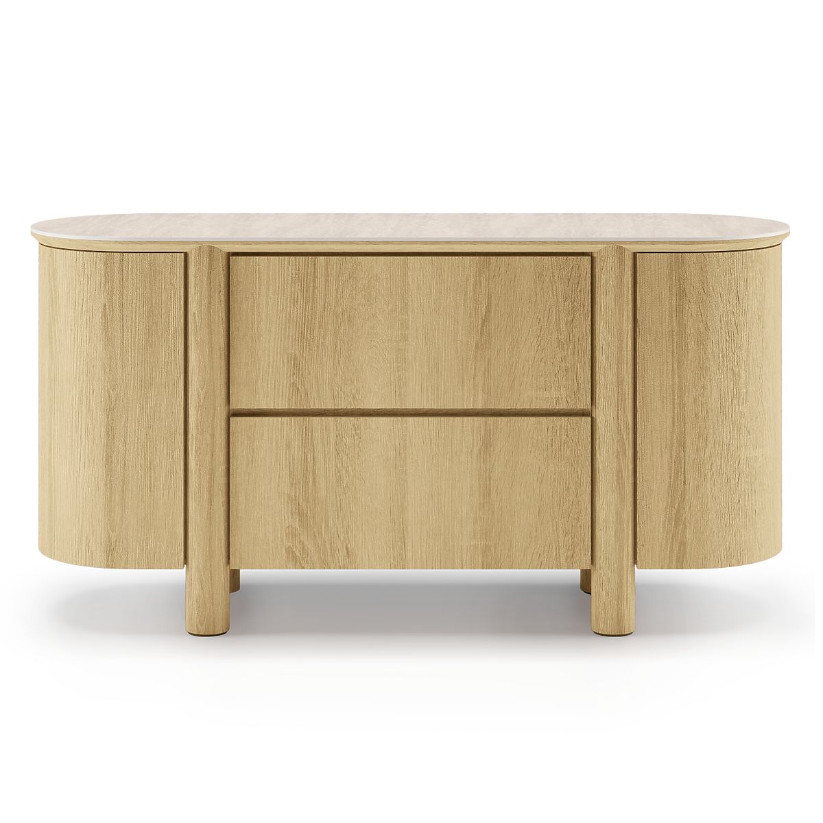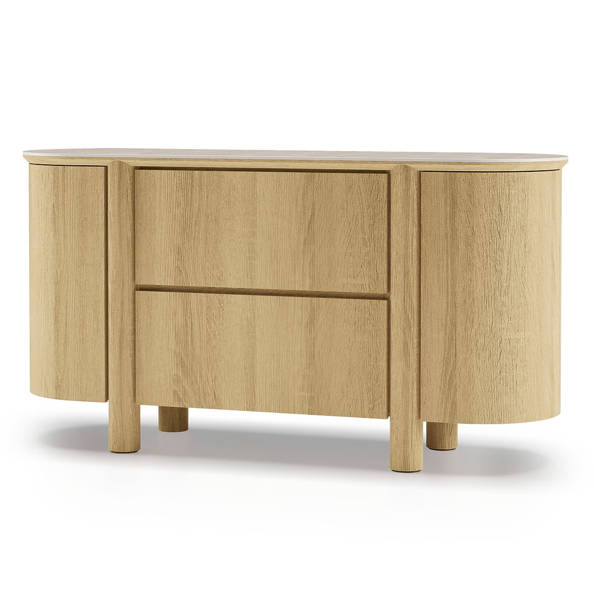 Rounded Segretto sideboard in natural oak with travertine top. .. more