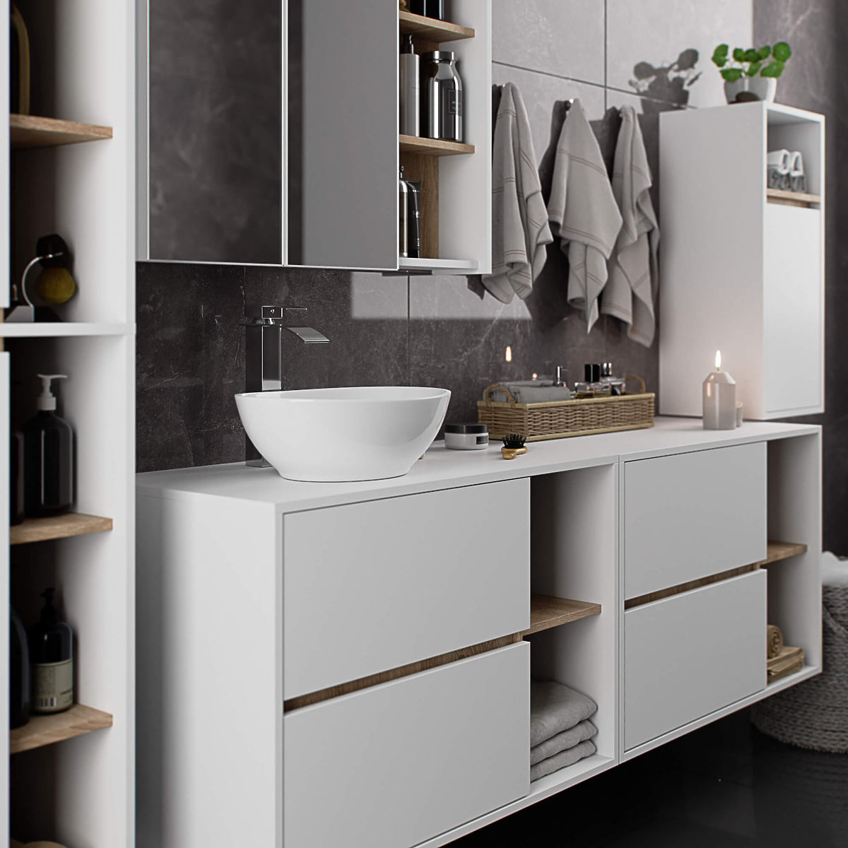 Hanging cabinet with drawers and shelves for modern bathrooms. .. more