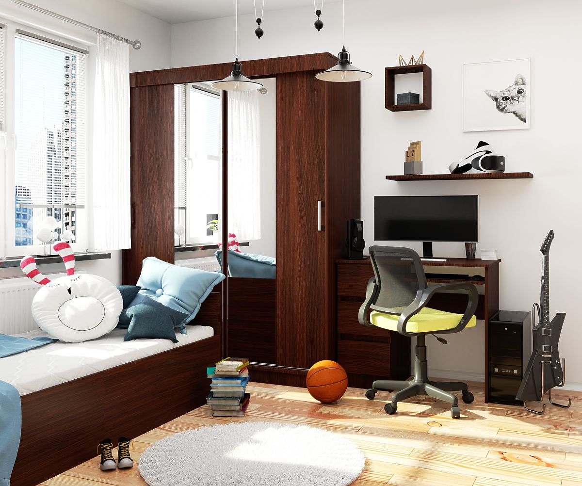 The large wenge wardrobe offers a range of benefits from its use, as it has many very useful solutions for everyday use. It's not just about the mirror that allows us to check if our chosen outfit fits, but also, for example, the clothing rod and a large number of shelves. Other advantages of this product include:
