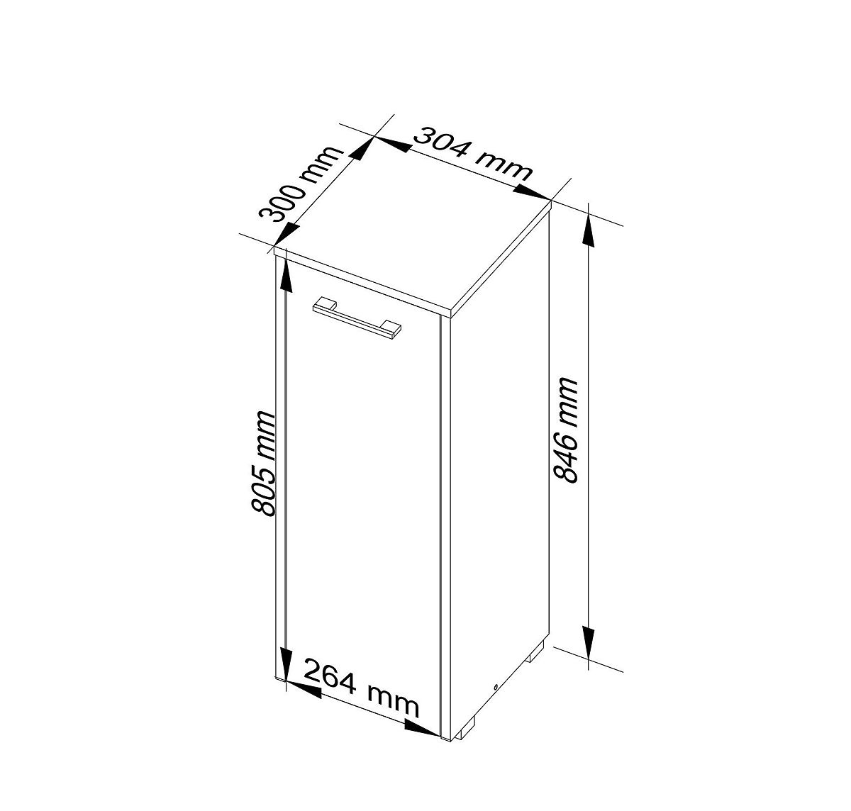 The white standing bathroom cabinet is a very practical and elegant piece of furniture in its simplicity. Thanks to its small dimensions, it can be used even in bathrooms with limited space. The spacious shelves of the cabinet can hold towels, cleaning products, or spare soaps and cosmetics. The cabinet can also be used for a bathroom scale, hair styling devices, or a foot massager. The cabinet top at a suitable height can be designated for daily-used cosmetics and perfumes or a decorative makeup mirror. The cabinet is made of laminated board, which is resistant to moisture and abrasion. The furniture is finished with a durable and non-fading melamine foil. The cabinet can be cleaned frequently without fear of damaging its surface. The white standing bathroom cabinet suits bathrooms with both light and dark tiles, as well as classic and retro-styled bathrooms with gold fittings. Furniture combined with a cabinet under the sink from the same collection will be an attractive visual and functional addition to the bathroom.