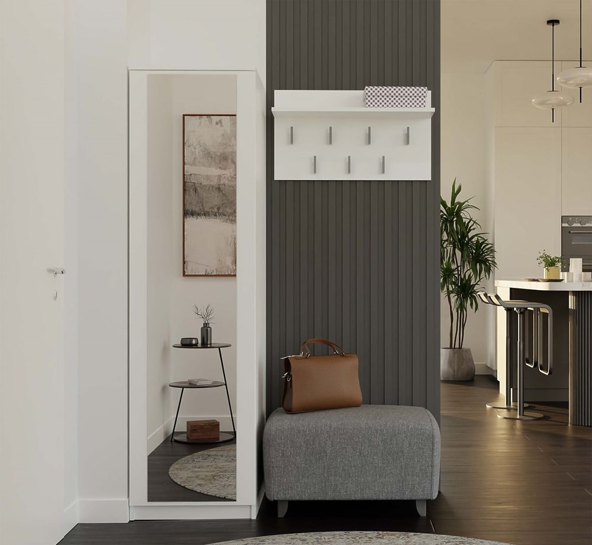 Mirror on the front – narrow wardrobe with a full-size mirror is an ideal solution for small spaces