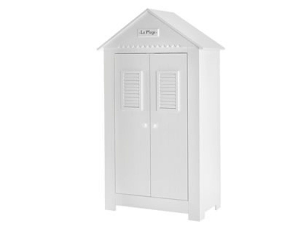 - part of the wardrobe is a wooden sign with the French sign saying: La Plage-beach