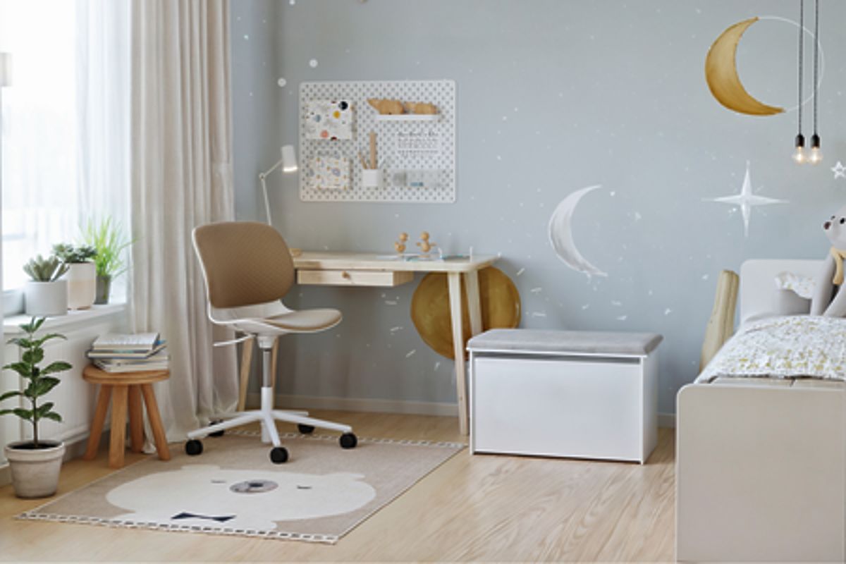 The DARIA chest combines spaciousness with an aesthetic appearance, making it an ideal solution for any child's room, but it also fits well in other parts of the house, such as the hallway or bedroom. The upholstered seat, covered with a soft material, provides comfort, allowing the child to sit on it during play or dressing. Thanks to the sturdy gas piston, the chest lid opens smoothly and effortlessly, allowing the child to easily and safely use its contents. The spacious interior allows for the storage of toys, books, and other small items, keeping the room always tidy. Thanks to its design and functionality, the DARIA chest becomes not only a practical element but also an aesthetic accent in the child's room.