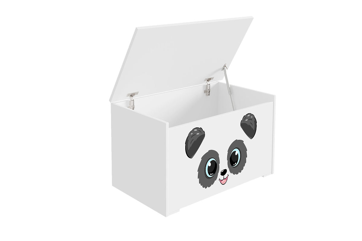 White toy chest with a charming panda print for children's rooms. .. more