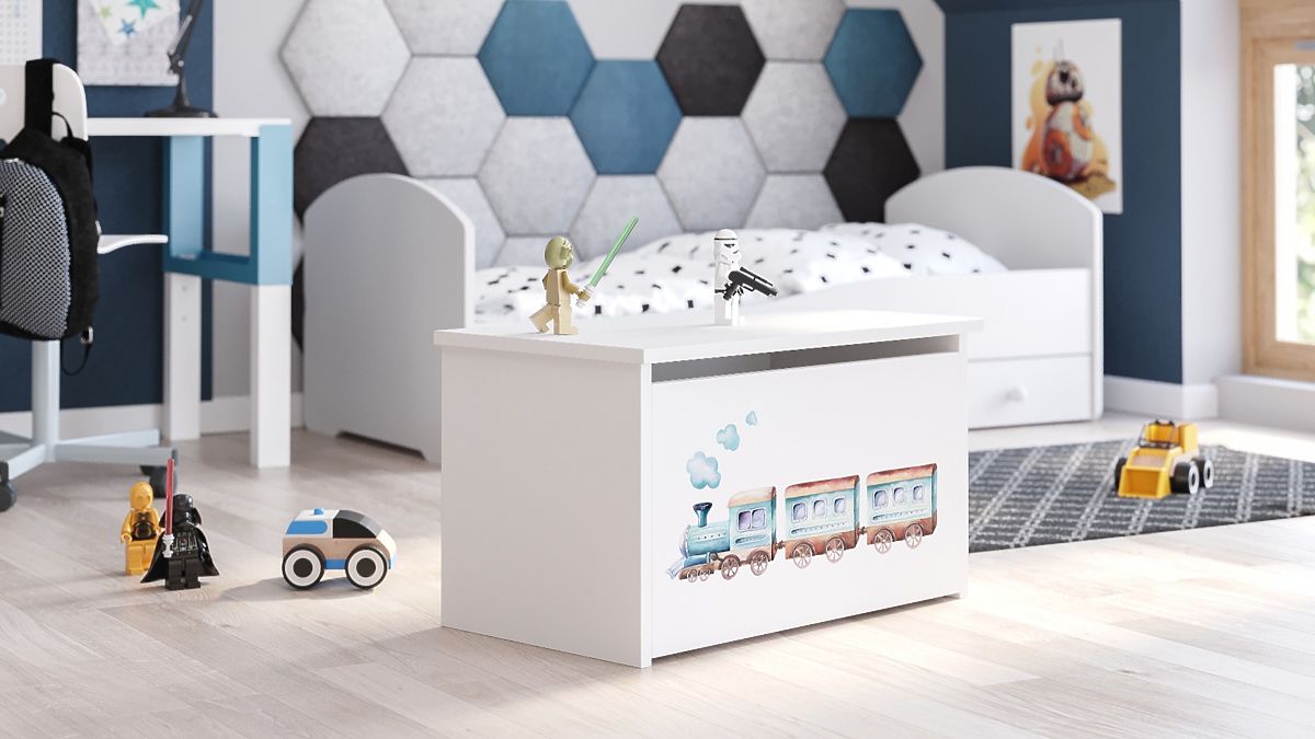 Banaby.eu » Children's furniture / Children's chests of drawers and wardrobes / Toy chests / Daria White Toy Chest with Train Print