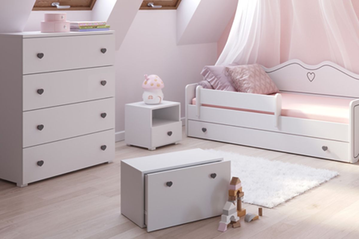 The INGA chest features a modern, minimalist appearance that fits well with various interior styles. It can serve not only as a storage space for toys but also as a practical hideaway in other rooms. Made from durable laminated board and finished with PVC edging, it guarantees strength and easy maintenance of cleanliness.
