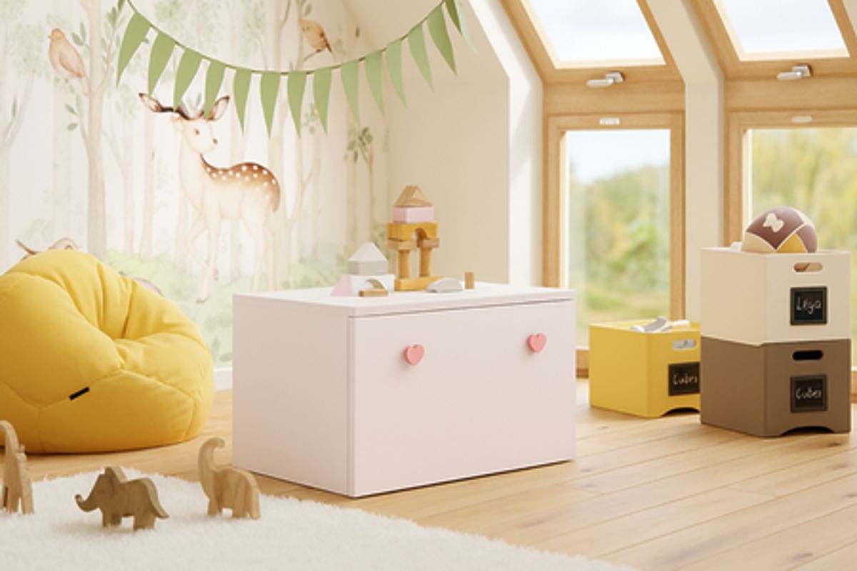 The INGA toy chest is an excellent way to organize space in a child's room, bedroom, or hallway. With its spacious interior, it allows for convenient storage of toys, blankets, clothes, and other small items, helping to maintain order in any interior. Its functional design ensures quick and easy access to stored items.