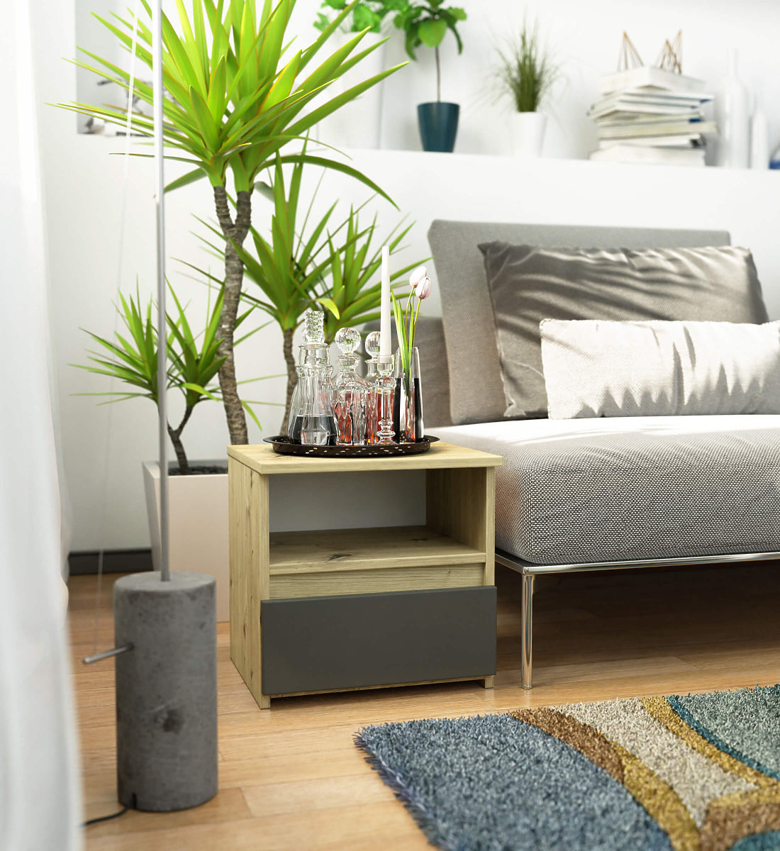 Nightstands are a popular type of furniture placed next to the bed. A lamp is most often found on its top, while inside are items that facilitate rest and sleep. Those looking for an elegant dresser should pay attention to the CL1 40 cm nightstand in artisan oak graphite gray color. It will look beautiful in any bedroom. It can also be placed in a children's room.