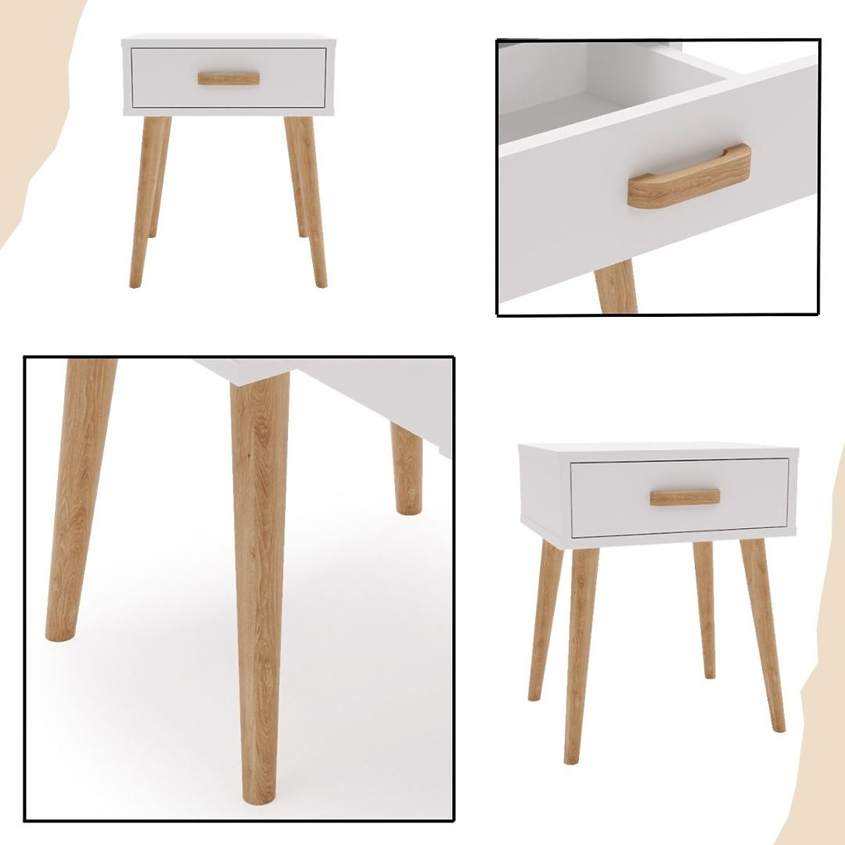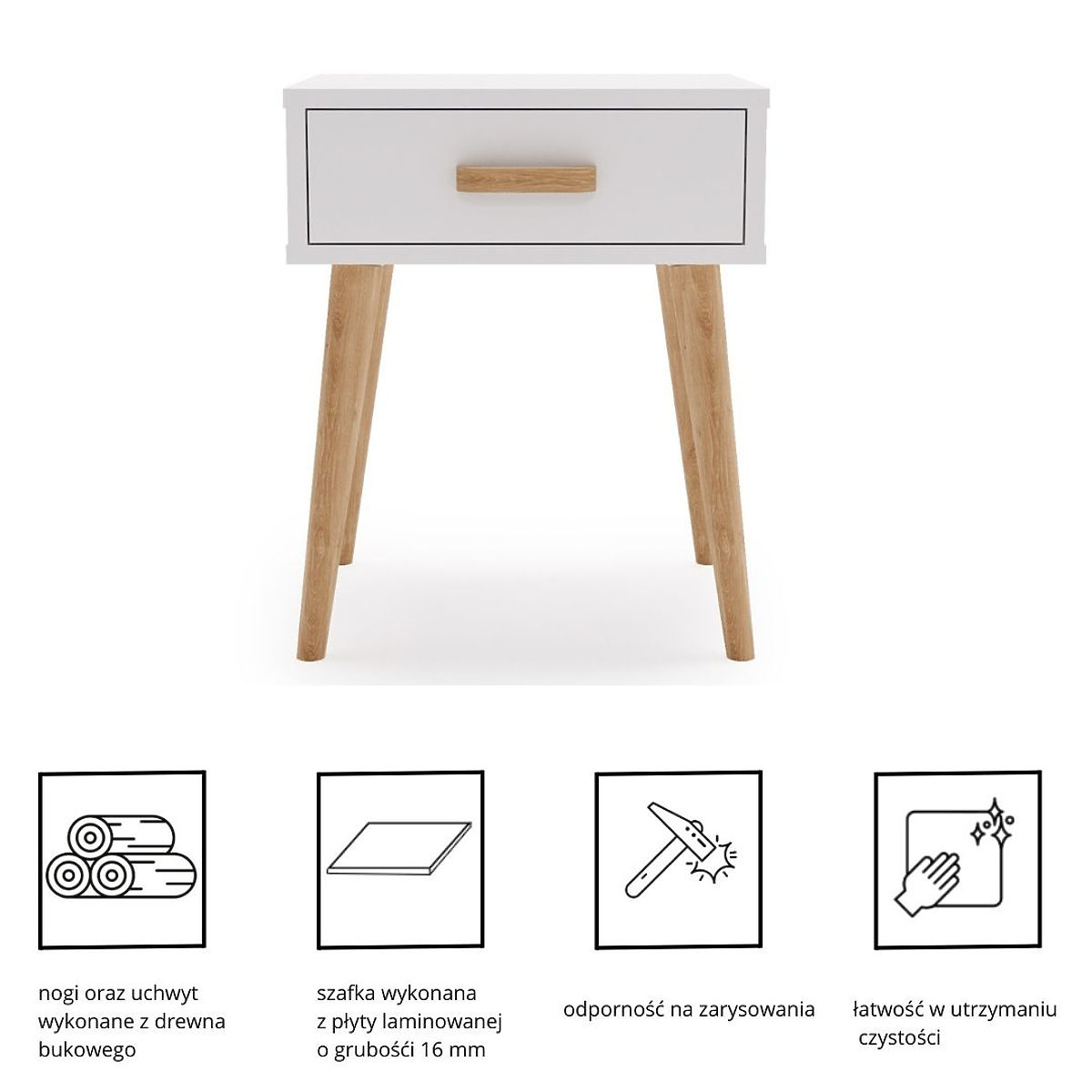 LUNA is more than just a nightstand – it's a practical solution that makes organizing everyday items easier. You can place a night lamp, alarm clock, or decorations on its surface, while the spacious drawer allows you to store small items you want to keep handy before sleeping. Carefully selected materials guarantee durability, and attention to detail ensures the furniture looks elegant and modern. Stable wooden legs add lightness and ensure sturdiness, making it not only a beautiful but also a functional addition to your interior.