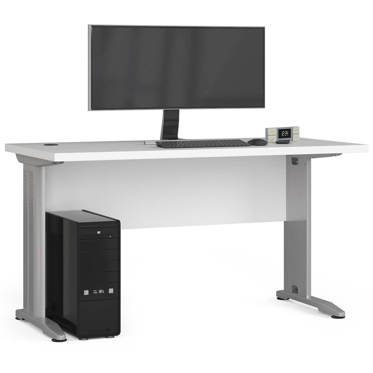 The free-standing BM-135 desk in white is an ideal solution for a computer station in any home or office. The furniture is made of a 32-millimeter thick laminated board that is durable and abrasion-resistant. The visible edges of the desk are equipped with an ABS edge, which also features high resistance to damage. The matte top and back perfectly match the metal legs. If you are looking for a design with a large work surface, we recommend exploring our offer. We guarantee the highest quality, functionality, modern design, and an attractive price. You can customize the desk with additional office furniture available in our online store. We hope it meets the expectations of even the most demanding customers. The desk is easy to clean, and its simple yet elegant form gives the furniture a timeless and universal character.