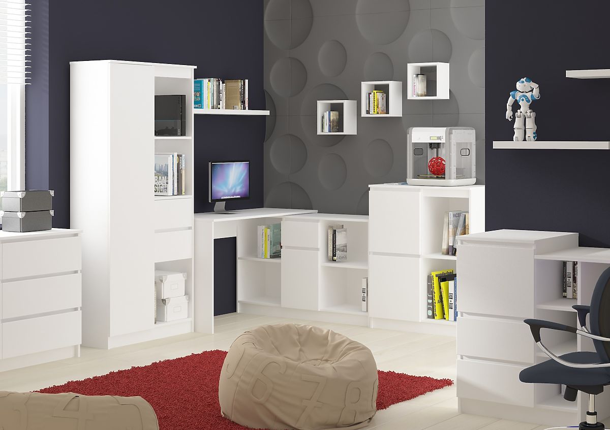 Innovative solution. The desk can be combined with the cabinet to easily create a corner desk. The option to purchase the cabinet and desk separately is another feature of our furniture. The furniture is versatile for both right-handed and left-handed use, simply place the cabinet on the other side of the desk.