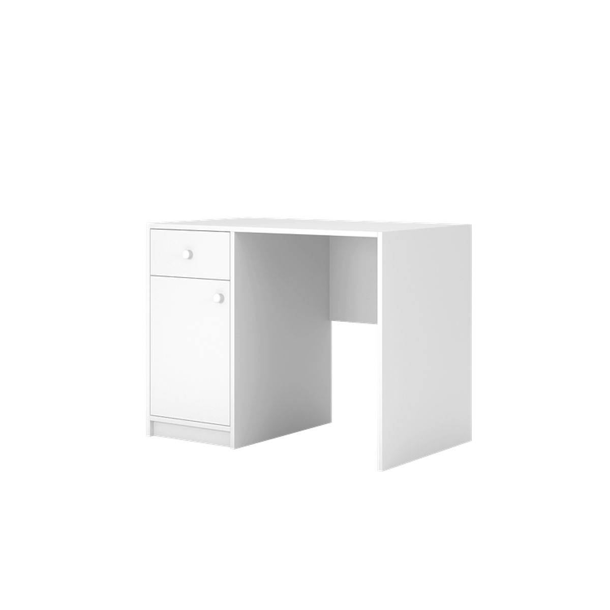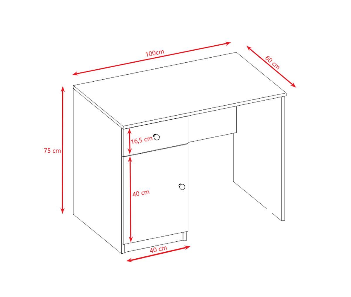 The desk includes 2 storage spaces in the form of a drawer and a cabinet.