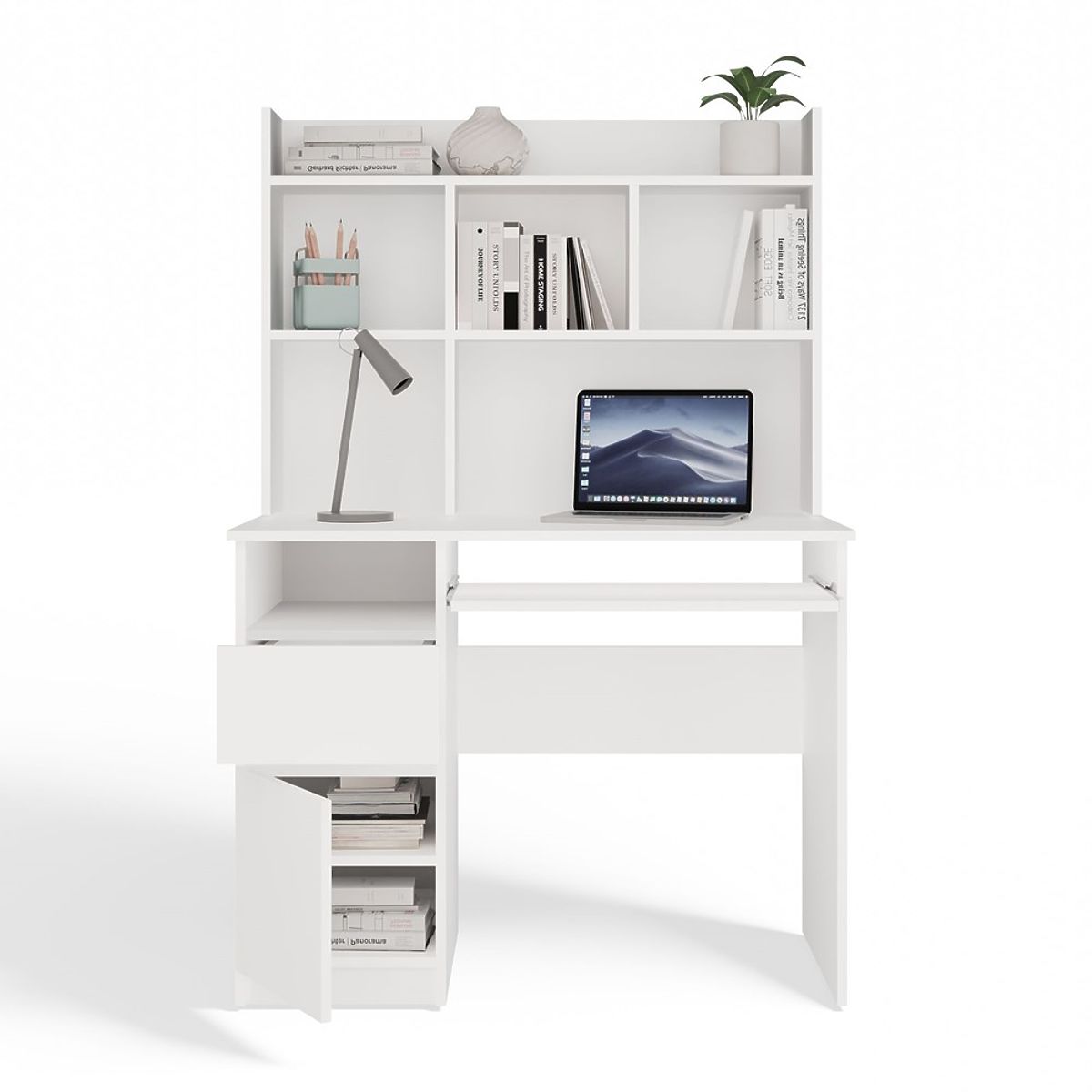 PORTO Left Desk with Top Matte White Drawer Shelves for Office Room