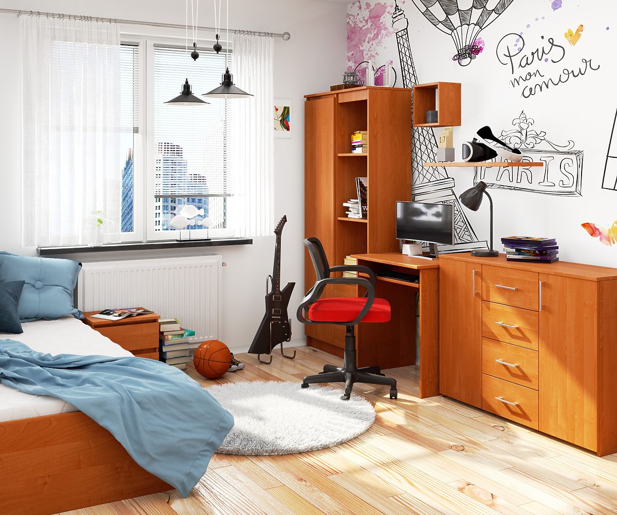 This small, simple, and classically designed writing desk is perfect for very small rooms where space is limited for creating a work or study corner. With its universal and timeless appearance, the desk from our range fits well in a child's or student's room, as well as in a home office. It can also be used in a living room or any other room where you wish to create a computer corner. The freestanding STAR writing desk in alder color is characterized by simplicity and elegance. The sliding keyboard shelf and work surface accommodate the necessary items for working with a laptop. We also recommend exploring other offers from this collection. They allow you to create an office space according to the needs of customers who emphasize functionality. We offer competitive prices, high quality of offered products, and their universal design.