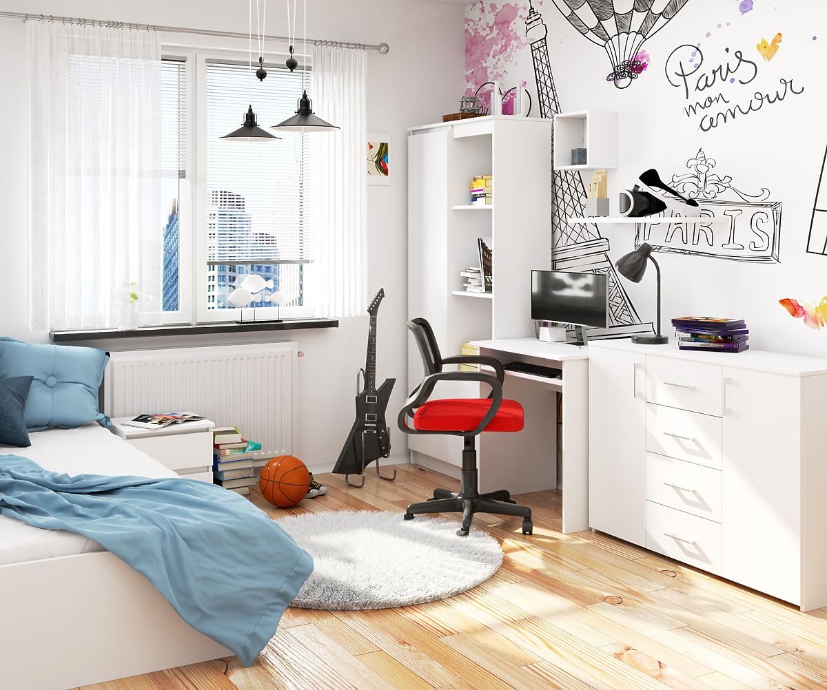 A functional and practical piece of furniture that is essential in any room occupied by a schoolchild, it also fits well in an office or home study. It provides an ideal workspace, especially in small areas. Thanks to its dimensions, it can be used literally anywhere, delighting with its modern design and surprising with its above-average quality. The durable, very sturdy, and scratch-resistant desk is designed in a fashionable white color. It is definitely one of the most popular offerings that will surely meet the expectations of customers focused primarily on functionality. We offer competitive prices and a wide selection of similar products that, when combined with the desk, create a beautiful ensemble. We recommend exploring our furniture designs.