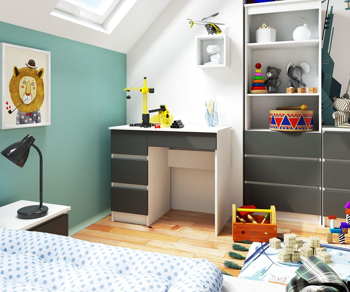 Computer desks have become an essential part of our homes. It's no wonder, as we spend so much time in front of the computer screen, whether learning or working. Which furniture model to choose? An interesting option is the A-7 90 cm left computer desk in white with graphite gray fronts. It fits perfectly in the living room, children's room, and office.